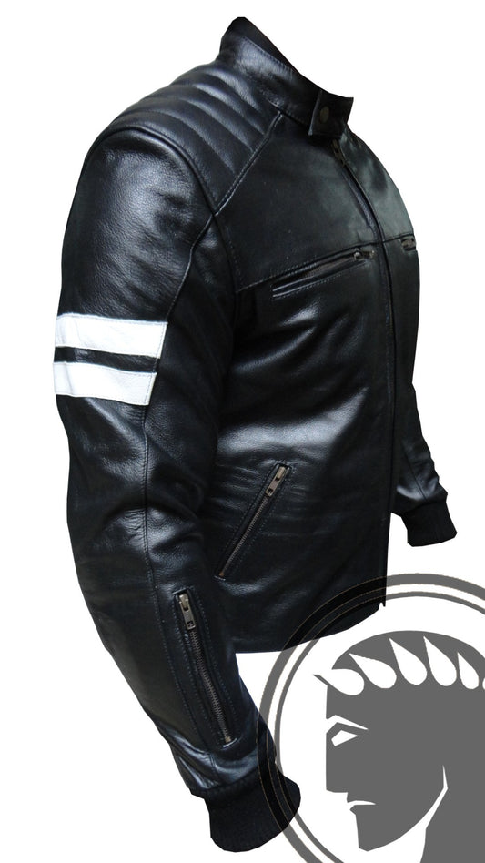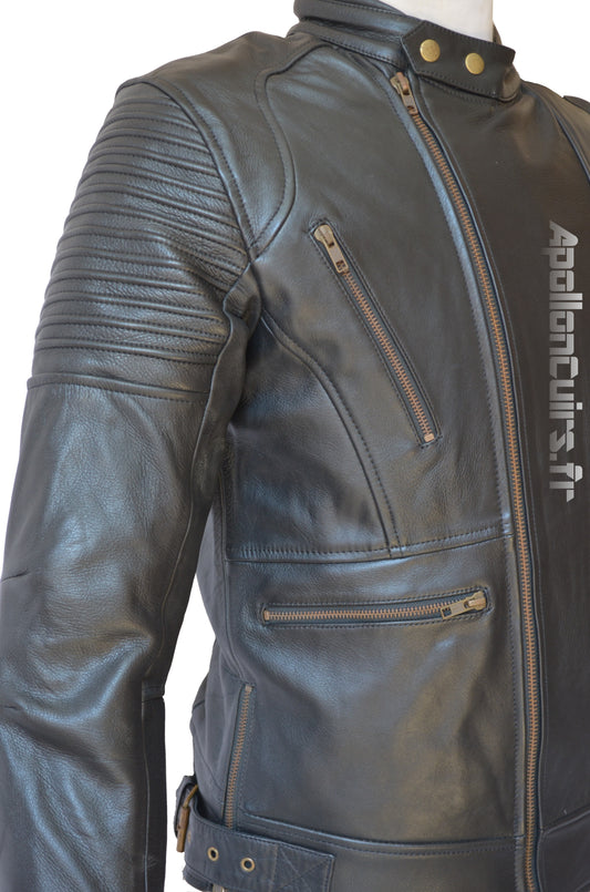 Blouson Moto Rétro Vintage Homme en Cuir Noir