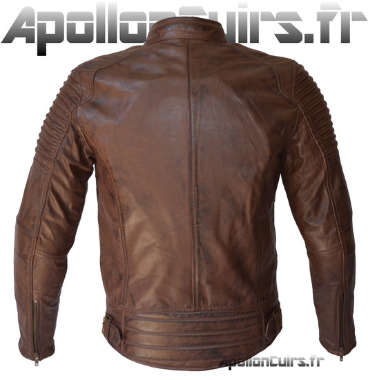 Blouson Moto Homme Marron VINTAGE en Cuir